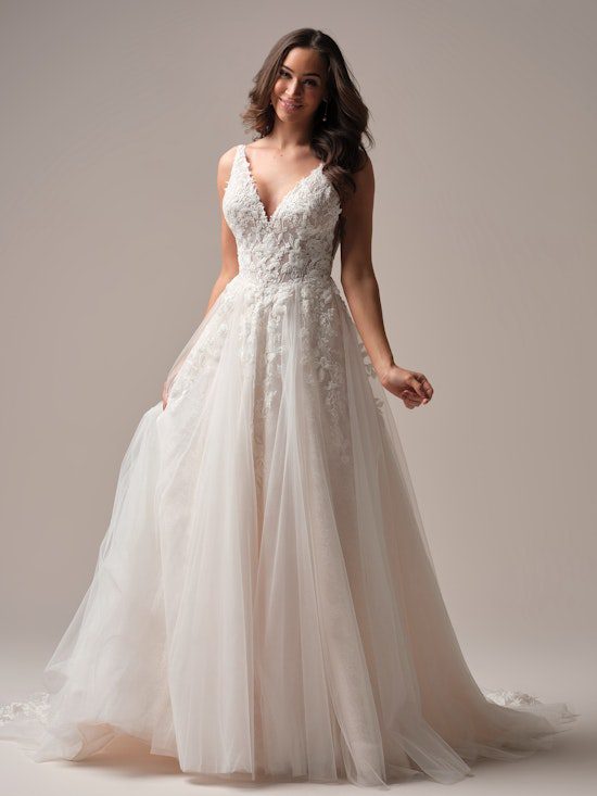 You’re giving chic. You’re glowing with sophistication. You’re serving up major bridal romance in this beaded flowy V-neck A-line bridal gown designed for the dreamiest of summer celebrations.
