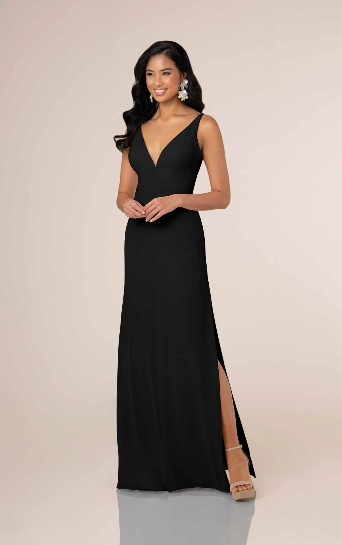 Chiffon column deep v-neckline bridesmaid gown