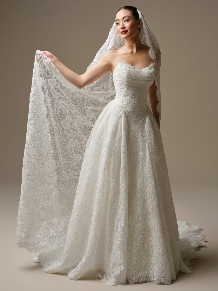 Customize your look with optional add-ons: Detachable Cap Sleeves, Detachable Long Sleeves, Waltz Veil