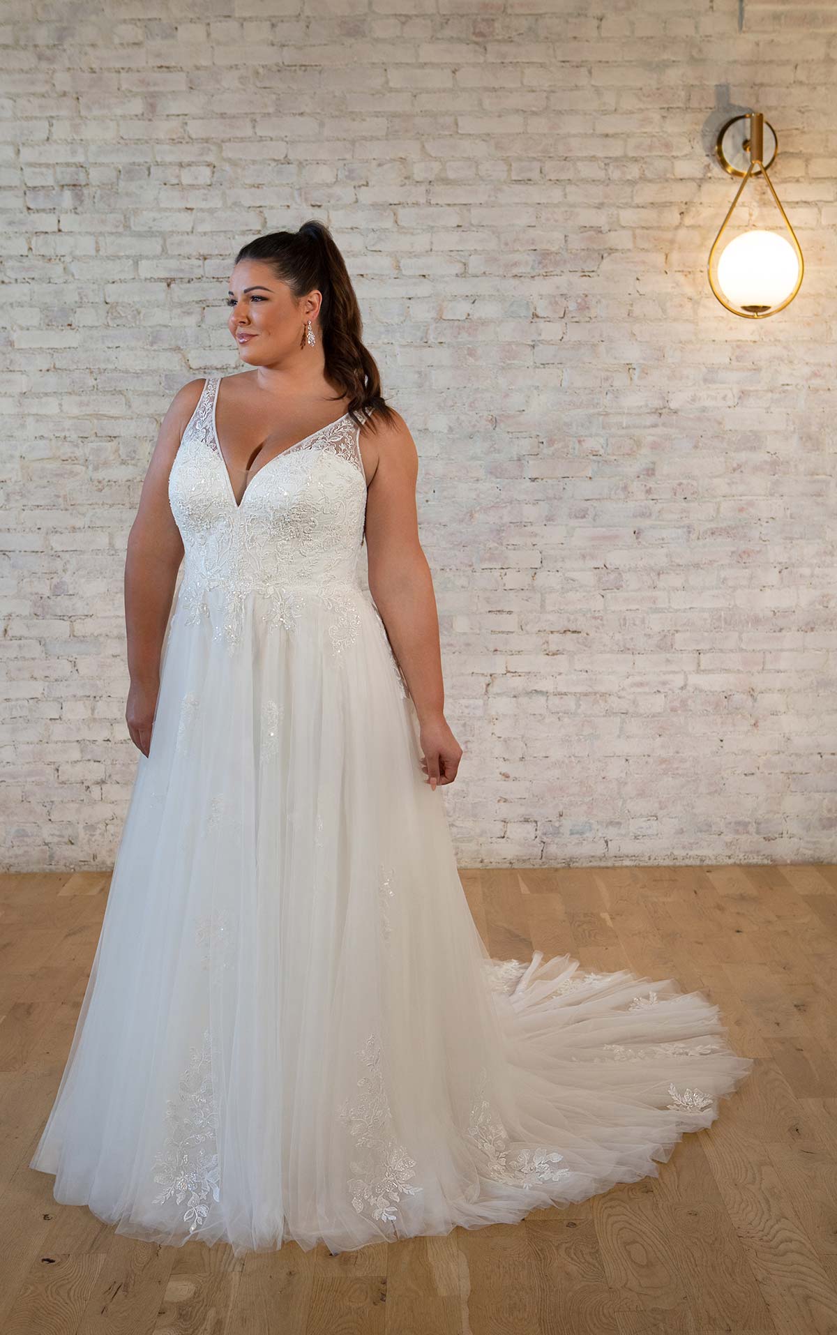 ETHEREAL LACE A-LINE WEDDING DRESS WITH PLUNGING NECKLINE